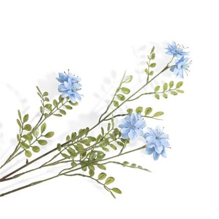 BLOSSOM SPRAY is een lange tak met fijne groene blaadjes en frisblauwe bloemen. Je kunt deze tak van 91 cm solo in een hoge vaas zetten, maar hij past ook heel goed doet in een veldboeket, waarin je verschillende takken uit het COCOmaison assortiment samenvoegt. Zo'n boeket kun je helemaal zelf samenstellen, in ton sur ton kleuren of juist in een zomerse kleurenmix.