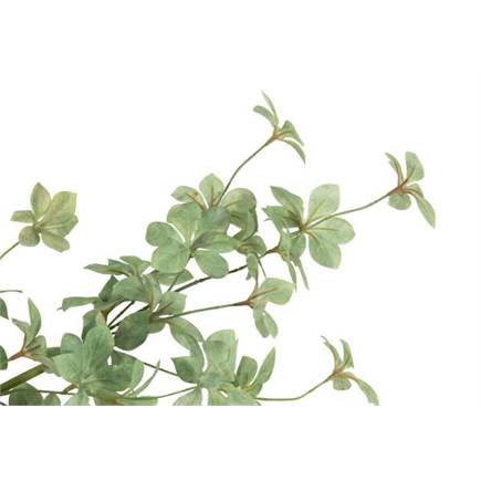 De TROPAEOLUM of oostindische kers is een sierlijke klimplant met in de natuur vaak intens rood en oranje gekleurde bloemen. Die bloemen ontbreken in deze kunsttak, maar juist daardoor is het een heel neutrale vaasvuller met mooie groene bladeren. De tak is vol genoeg om hem alleen in een vaas te zetten, maar je kunt hem natuurlijk ook samen met andere bloemen en takken uit het uitgebreide COCOmaison assortiment schikken tot een groot boeket. Deze tak heeft een praktische gemiddelde lengte van 88cm.