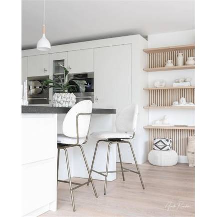 Bij COCOmaison zit je helemaal goed. Zeker met de Kjel barstoel! Deze hippe, moderne stoel valt op door het goudkleurige frame en is bekleed met een zachte, trendy stof in het crème. De Kjel barstoel is draaibaar, extra handig dus! De barstoel is ook verkrijgbaar in antraciet, okergeel of mint. Deze crèmekleurige barstoel heeft een zithoogte van 66 cm en staat bijvoorbeeld erg tof in een setje van twee aan een eetbar in de keuken.