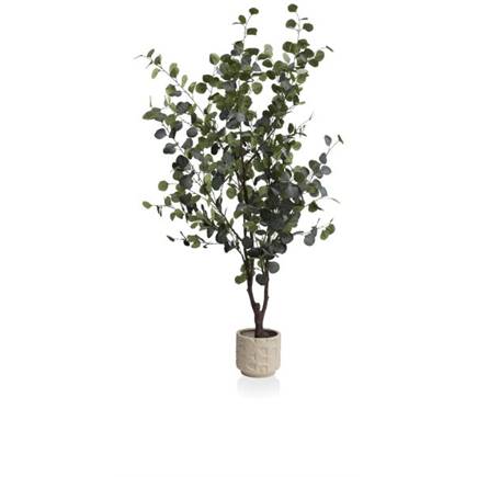 Een boom is een prachtig statement in het interieur, maar er zijn helaas maar weinig bomen geschikt voor een leven in huis. Toch zo’n grote vriend in huis halen? Dan is onze Eucalyptus tree, met zijn frisse groen-blauw-grijzige blaadjes en natuurgetrouwe uitstraling, een goede keuze! Deze kunstboom heeft een flink formaat van maar liefst 180 cm hoog (inclusief zwarte binnenpot) en ca. 55 cm breed. Hij biedt al het moois van een echte eucalyptusboom, maar dan zonder de nodige verzorging, ideaal toch? Liever een maatje kleiner? Er zit ook een variant van 140 cm in de collectie van COCOmaison. Potgrootte: diameter 15 cm / hoogte 13 cm.