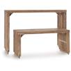 Een wandtafel is een ideaal compact meubel voor een lege wand. Je kunt er een bakje met je sleutels op kwijt, een mooie vaas, een sfeervolle lamp, een leuke plant en noem maar op. Deze wandtafel Lino heeft een mooi, subtiel design met latjes en afgeronde hoeken, wat hem een leuke retrolook geeft. Maar ook in een Scandinavisch interieur komt dit item uit de COCOmaison collectie uitstekend tot zijn recht! Lino is verkrijgbaar in twee kleuren, waarvan deze variant in kleur naturel is uitgevoerd. De wandtafel is gemaakt van prachtig acaciahout en is 120 cm breed, 40 cm diep en 78 cm hoog. Met het gelijknamige bankje en kastje Lino creëer je een mooi geheel in je interieur.