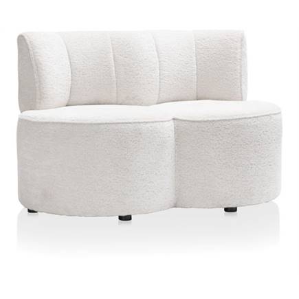 Dit bankje uit de Roan-serie van COCOmaison is met zijn bolle vorm een opvallende verschijning. In de serie zitten ook nog twee poefs en een fauteuil en alle elementen zijn door hun vorm perfect met elkaar te combineren. Ze zijn bekleed met een trendy stof en zijn verkrijgbaar in twee kleuren. Dit bankje is uitgevoerd in kleur crème en gemaakt van 30% metaal, 15% multiplex, 30% schuim en 25% stof. Goed om te weten: er worden twee sets poten meegeleverd, waardoor je de fauteuil op een standaard zithoogte kunt plaatsen, maar ook op een hoogte die geschikt is voor gebruik aan een eettafel. Het bankje is 120 cm breed, 71 cm diep en heeft inclusief rugleuning een hoogte van 74 cm.