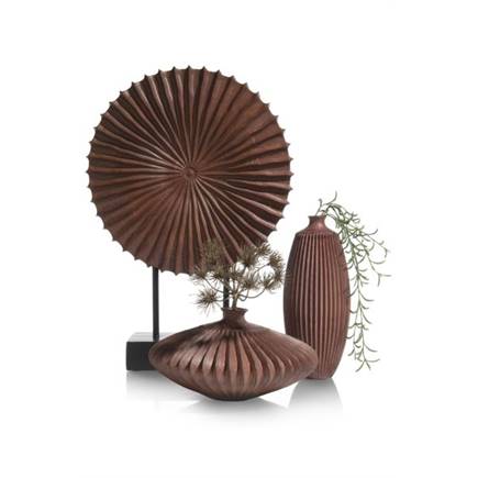Ben je op zoek naar accessoires die meer warmte aan je interieur geven? Dan is deze koperkleurige vaas NONI uit de collectie van COCOmaison een absolute musthave. NONI is 30 cm hoog en gemaakt van polyresin. De ruwe structuur en het reliëf aan de buitenkant zorgen voor een wat ruiger effect. De vaas is waterbestendig en kan daarom perfect buiten op de tuintafel staan of binnen met een mooie bos bloemen erin. NONI is in twee maten verkrijgbaar en ook als beeld.