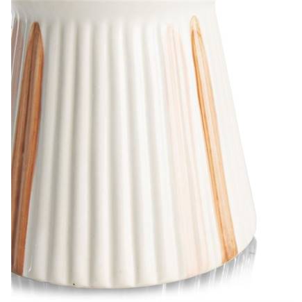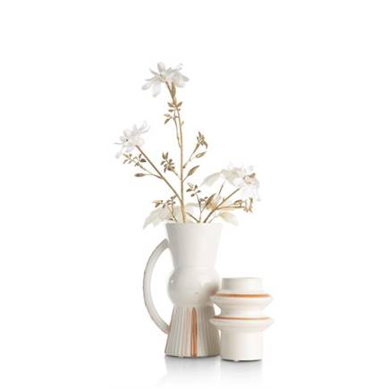 Oranje is terug in het interieur, maar veel subtieler dan in de jaren '70. De oogverblindende compleet oranje muren en meubels hebben plaatsgemaakt voor zachte kleuraccenten. De NORA serie van COCOmaison is hiervan een goed voorbeeld. De vaas en kandelaar vormen een leuke set, maar kun je natuurlijk ook apart van elkaar ergens neerzetten. Deze vaas heeft een hoogte van 26 cm, een geplooide voet en en sierlijk handvat. Zet er een paar takken of een mooie boeket in en je huis oogt direct zonnig en zomers.