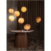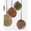 De Abby hanglamp van COCOmaison past helemaal in de trend van natuurlijke vormen. De lamp bestaat uit vijf glazen bollen, waarvan de vorm duidelijk op een kiezelsteen geïnspireerd is. De rvs armatuur is 100cm breed en heeft een verstelbare hoogte van maximaal 160cm. De bollen, elk net even anders van vorm maar van ongeveer gelijke grootte, zijn gemaakt van glas in groen- en bruintinten, die warm oplichten als de lamp aan is. De lamp is geschikt voor dimbare led-lampen met een E27 fitting, zodat je zelf kunt kiezen tussen zachte sfeerverlichting of genoeg licht om bij te lezen of werken.