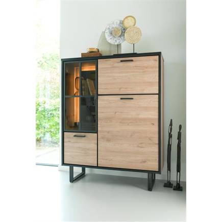 Zoek je nog een praktische blikvanger in je interieur? Een kast met zowel bergruimte als een toffe uitstraling? Dan is dit highboard van 150 cm hoog uit de Avalon collectie een aanrader. De kast combineert een natuurlijke uitstraling met moderne details en accenten. Dankzij de 2 deuren, 1 glasdeur en 1 klep is er voldoende bergruimte. Het geïntegreerde ledlicht in de kast is opvallend. Het highboard is gemaakt van Primo Laminato (HPL) en Laminato (Melamine). Het is afgewerkt in de kleur oak natural vintage.