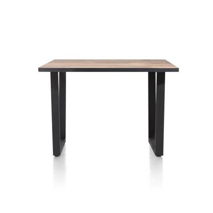 Deze moderne bartafel uit de Avalox-collectie is ideaal voor een gezellige maaltijd. Het tafelblad is vervaardigd uit Primo Laminato, een duurzaam en onderhoudsvriendelijk materiaal dat de uitstraling van echt hout heeft, en is verkrijgbaar in twee warme tinten: driftwood (afgebeeld) en oak natural vintage. Het onderstel is van zwart metaal, met drie opties om uit te kiezen: stoere V-poten (zoals hier), vier rechte poten voor een strakke uitstraling, of een centrale poot (zoals op de foto) voor een subtiele, moderne touch. De bartafel is verkrijgbaar in vier formaten, en deze uitvoering heeft een afmeting van 170 x 98 cm.