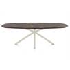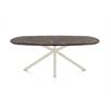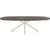 Eetkamertafel ovaal 210 x 100 cm. - hpl primo laminato blad - centrale kruispoot crème Middenbruin