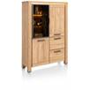 Deze bergkast uit collectie Delmonte heeft een klassieke en statige look. Deze staat perfect in authentieke interieurs en heeft veel weg van een massief houten kast door de structuur op de kastdeuren. Deze kasten zijn echter gemaakt van Primo Laminato (HPL), een hoogwaardig en onderhoudsvriendelijk materiaal. Deze kast heef een glazen deur, waar je achter de legplanken twee ledstrips kunt vinden. Daarnaast heeft de kast ook een mooie, dimbare ledstrip bovenaan om de kast extra mooi te verlichten. Verder heeft de kast nog twee handige kastdeuren en twee ruime lades. De kast is 120cm breed en 170cm hoog. Iets lager en iets breder dan de vitrinekast uit de gelijknamige collectie.