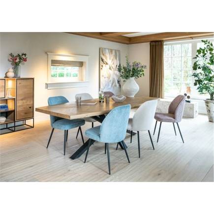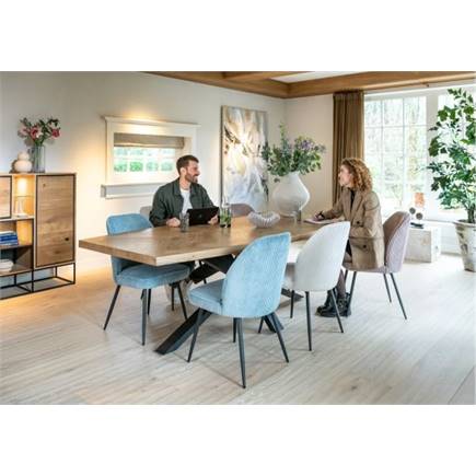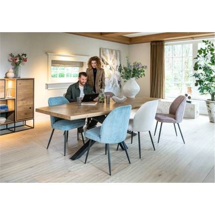 Deze stoel Leonidas heeft een simpel design met een brede rug, maar de grootste aandachtstrekker aan deze stoel is zonder twijfel de ultrazachte veloursstof Rivas waarmee de stoel bekleed is. Deze ribstof voelt heel zacht en aaibaar aan, daarom is deze stof een genot om op te zitten! Deze versie is uitgevoerd in de kleur Charcoal, maar er zijn ook nog 3 andere kleuren verkrijgbaar!