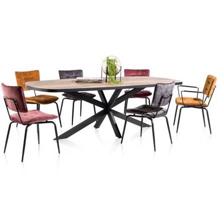 Eetkamerstoel Manou heeft een klassiek design in een modern jasje. Opvallend zijn de gecapitonneerde rugleuning en zitting. Doordat het frame doorloopt over de achterzijde heb je meteen een praktische greep om de stoel vast te pakken, zonder dat je aan de stof komt. Voor de bekleding van deze eetkamerstoel Manou is gekozen voor de stof Karese in de kleur off black. Manou is in meerdere kleuren leverbaar.