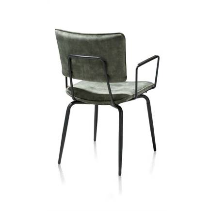 Deze armstoel Manou combineert een strak design met sjieke details. De stoel heeft een zwart metalen frame met handige armleuningen in de kleur off black. Voor de bekleding is gekozen voor de microvezelstof Karese, die aanvoelt als velvet, warm en zacht tegelijk. Dankzij de gecapitonneerde rugleuning en zitting krijgt de armstoel een luxe uitstraling. De kleur van deze Manou is olijf, maar is ook in andere kleuren leverbaar. Er is ook een versie zonder armleuningen.