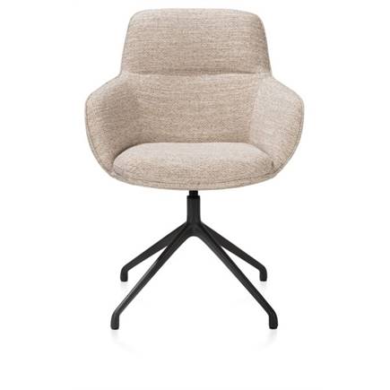 Ervaar de ideale combinatie van stijl en comfort met armstoel Mateo van Henders & Hazel. Deze verfijnde eetkamerstoel ademt elegantie en voelt zich moeiteloos thuis in zowel moderne als klassieke interieurs. Wat meteen in het oog springt? Het gestroomlijnde design, de subtiele stiksels en de aangenaam zachte zitting. Mateo is niet alleen een lust voor het oog, maar biedt ook je rug de nodige steun: de ergonomisch gevormde rugleuning en zitting zorgen voor heerlijk zitcomfort, zelfs tijdens lange avonden tafelen. Mateo is meer dan een stoel – het is een uitnodiging om te blijven zitten en te genieten.Verkrijgbaar in diverse bekledingen en kleuren, met of zonder armleuningen. Ook het onderstel kies je zelf: vier poten (met of zonder wieltjes) of een draaibare variant. Deze uitvoering is afgewerkt met een draaipoot in rough off black en bekleed met de stof Bellini in een elegante crème kleur.