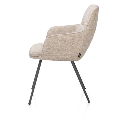 Ervaar de ideale mix van stijl en comfort met armstoel Mateo van Henders & Hazel. Deze elegante eetkamerstoel brengt verfijning in elke ruimte en voelt zich moeiteloos thuis in zowel moderne als klassieke interieurs. Het slanke silhouet, de subtiele stiksels en de zachte bekleding trekken direct de aandacht en nodigen uit tot ontspannen zitten. De ergonomisch gevormde rugleuning en zitting zorgen voor aangenaam zitcomfort, zelfs tijdens lange avonden tafelen.Mateo is meer dan een stoel – het is een plek om tot rust te komen en te genieten. Je personaliseert hem helemaal naar wens: kies uit een uitgebreide reeks stoffen en kleuren, met of zonder armleuningen, en bepaal het type onderstel dat bij jouw woonstijl past – met vier poten, wieltjes of een draaibare poot. Deze versie is uitgevoerd met vier poten in graphiet en bekleed met de stof Bellini in een zachte crèmetint – een subtiele, stijlvolle blikvanger voor elke eetkamer.