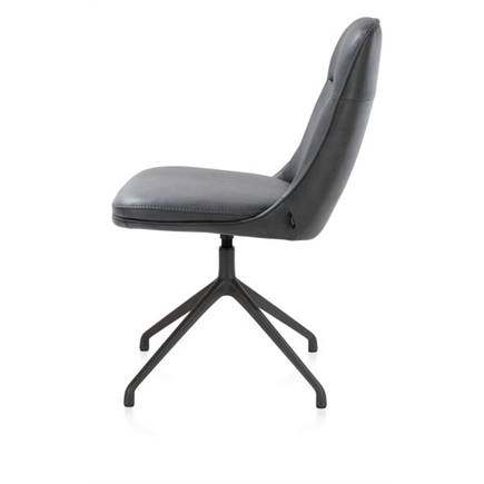 Stoel Mateo weet stijl en comfort feilloos te combineren in een elegant, doordacht ontwerp. Met zijn slanke lijnen, verfijnde stiksels en zachte bekleding straalt deze armloze uitvoering klasse uit aan elke eettafel. De ergonomisch gevormde rugleuning en zitting zorgen voor een comfortabele zit, zelfs tijdens lange diners.Dankzij zijn tijdloze uitstraling past Mateo moeiteloos in zowel moderne als klassieke interieurs. Liever een uitvoering mét armleuningen? Dat behoort ook tot de mogelijkheden. Je kiest uit een uitgebreid aanbod aan stoffen en kleuren, en stelt het onderstel samen naar wens: vast, met of zonder wieltjes, of draaibaar voor extra gebruiksgemak.Deze uitvoering is voorzien van een draaipoot in de kleur graphiet en bekleed met lederlook Pala in antraciet – een stijlvolle combinatie van subtiele elegantie en een robuuste toets.