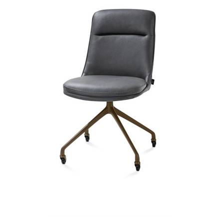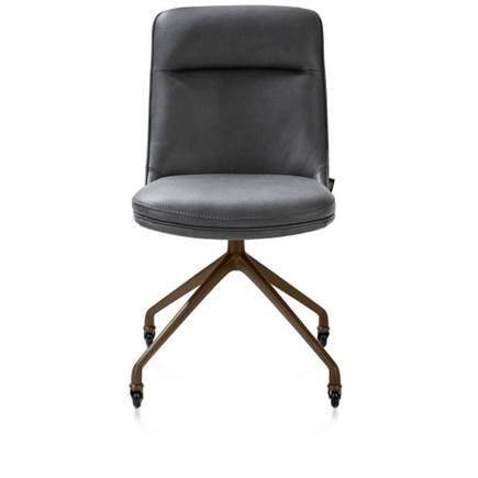 Stoel Mateo verenigt elegantie en comfort in een tijdloos, doordacht ontwerp. De armloze variant springt in het oog door zijn slanke belijning, verfijnde stiknaden en zachte bekleding – een subtiele blikvanger die moeiteloos charme toevoegt aan elke eetruimte. De ergonomisch gevormde rug en zitting zorgen ervoor dat je ook tijdens lange etentjes comfortabel en ontspannen blijft zitten.Dankzij zijn veelzijdige karakter voelt Mateo zich thuis in uiteenlopende interieurstijlen, van modern en strak tot warm en klassiek. Je hebt de keuze uit een breed palet aan stoffen en kleuren, met of zonder armleuningen, en verschillende onderstellen: vast, met wieltjes of draaibaar voor extra gebruiksgemak.Deze uitvoering is voorzien van een draaibare poot op wieltjes in de kleur steel brown en is bekleed met lederlook Pala in antraciet – een geraffineerde combinatie van ingetogen elegantie en een stoer accent.