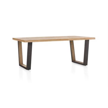 Deze moderne eettafel uit de Metalox collectie van Henders & Hazel is 250 x 100 cm. De tafel heeft een opvallend houten tafelblad met boomschorsrand. Bijzonder is de tafelpoot, die bestaat uit zowel hout als metaal en een V-vorm heeft. Door hout en metaal te combineren krijgt de tafel een eigentijdse stoere uitstraling.