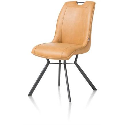 Hij zit heerlijk, hij staat super! Eetkamerstoel Michiel combineert de looks met een aangenaam zitcomfort. Deze variant van Michiel staat op een zwart metalen onderstel met vier stoelpoten. Het design van de stoelpoten geeft de stoel een moderne uitstraling. De kuip is bekleed met de stof Pala in de kleur okergeel. Pala is een onderhoudsvriendelijke leder-lookalike. Ontdek de verschillende frames van de eetkamerstoel en ontdek jouw favoriet!