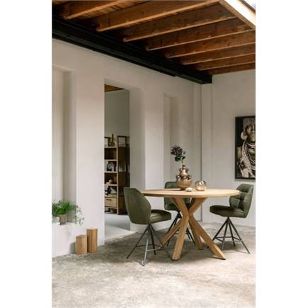 Haal de natuur in huis met de Nyborg-eettafel! Deze stijlvolle ovale tafel van natuurlijk gekleurd eikenfineer rust op een stevige centrale houten poot. Met een ruim tafelblad van 210 x 110 cm creëert Nyborg de perfecte setting voor gezellige diners. De beschermende platinalakafwerking voorkomt vlekken en behoudt de warme uitstraling van het hout. Verkrijgbaar in verschillende uitvoeringen en ideaal te combineren met de Nystead-collectie voor een harmonieus interieur. Laat je inspireren door dit natuurlijke pronkstuk!