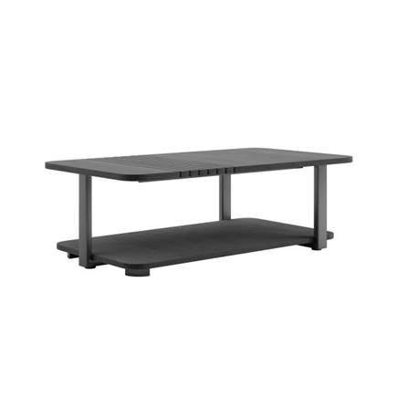 Deze salontafel uit collectie Pavie heeft een herkenbare look die tussen de meubels en tafels ligt. De rechtlijnige structuur van de kastmeubelen is te herkennen, maar de ronde vormen van de eetkamertafels ook. En natuurlijk kon de lattenstructuur in dit meubel ook niet ontbreken. De salontafel is er zoals de rest van de collectie in de kleuren Castle Black en Natural. Deze versie is uitgevoerd in de kleur Castle Black en past mooi in industriële interieurs. De salontafel meet 110x60cm.