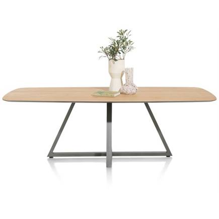 Bij de natuurlijke collectie Shimanto van Henders & Hazel zijn er 3 verschillende formaten ovale tafels verkrijgbaar: 240x110cm, 210x110cm en 180x110cm. Dit is de grootste versie met een tafelblad van wel 240cm. De tafels hebben een blad van eikenfineer in de kleur Bright Natural Oak en hebben een centrale kruispoot in antraciet metaal. De tafels hebben door hun organische vorm een natuurlijke uitstraling en passen perfect bij het gelijknamige kastenprogramma.