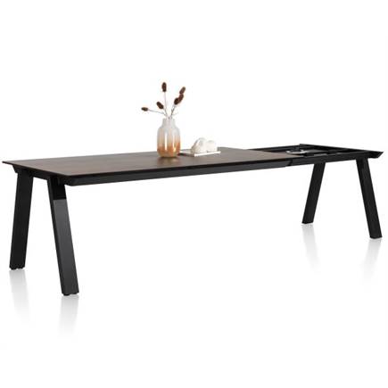 Zoek je een eetkamertafel met een modern design en een elegante en tegelijk stoere uitstraling? Kies je voor chique in plaats van robuust? Dan is deze uitschuifbare eetkamertafel uit de Stanford-collectie een aanrader. De tafel heeft een opvallend design. Op de zwart metalen tafelpoten rust een blad van keramiek op glas, in de kleur roest. De tafel is 140x100 cm en kan, dankzij een handig systeem, met 60 cm worden verlegd.