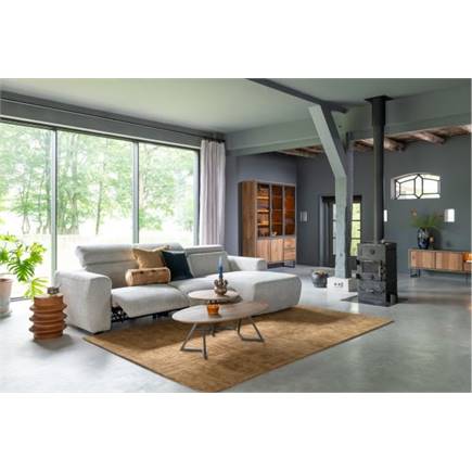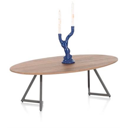 Een mooie salontafel mag natuurlijk niet ontbreken in de Trapani collectie. Net als zijn grote broers, de eetttafels, heeft hij een ovale blad. De tafel is 35 cm hoog en het blad heeft een afmeting van 110x65cm. Heb je nog wat ruimte over in je zithoek, combineer hem dan met een tweede salontafeltje en/of de Trapani laptoptafel. Alle 3 zijn ze uitgevoerd in warm mangiferafineer en hebben ze een stoer donker metalen onderstel zodat ze perfect bij elkaar passen, maar de verschillende afmetingen geven het geheel een speels effect.