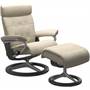Stressless® Erik is een eigentijdse relaxfauteuil met weelderig comfort en een ergonomische pasvorm. De exclusieve look wordt geaccentueerd door een soepel bovenkussen met dubbele stiksels. Een verstelbare hoofdsteun kan desgewenst een extra 10 cm aan de rughoogte toevoegen. Zachte en comfortabele schommelbewegingen en een oogverblindend ontwerp op een onderstel van hout en aluminium. Een genot voor het lichaam en voor de ogen. Leverbaar in de maten S, M en L.
