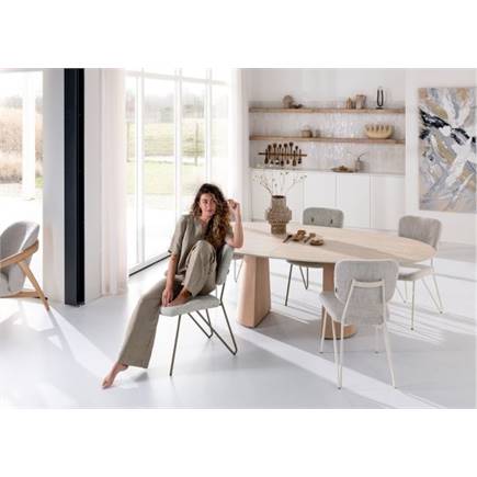 Ben je op zoek naar een eetkamertafel met vriendelijke, ronde vormen? Laat je verrassen door deze ovalen eetkamertafel ARAS met blad van Primo Laminato (HPL) in travertinlook. ARAS heeft een afmeting van 210 x 120 cm en staat op twee halve conische poten afgewerkt in gelakt eikenfineer. De poten zijn aan de binnenzijde verzwaard om maximale stabilteit van de tafel te garanderen. Zie jij jezelf al zitten?