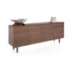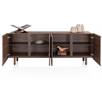 Dressoir BRIANZA is een stijlvolle blikvanger waarin elegantie en functionaliteit samenkomen. Het meubel is afgewerkt in gelakt notenfineer met een prachtige nerfstructuur die in één vloeiende lijn over de volledige breedte van het dressoir doorloopt. De vier greeploze deuren zijn uitgerust met een softclose systeem. Kenmerkend voor de BRIANZA-serie zijn de afgeronde hoeken van de ombouw en het bovenblad, die naadloos overgaan in de poten van notenfineer. Extra bijzonder: de fronten hebben een subtiele opstaande rand die samen één elegante, afgeronde lijst vormen. Ontdek ook de andere meubels uit de BRIANZA collectie en creëer een harmonieus geheel in je interieur.