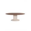 Ontdek de elegante uitstraling van eetkamertafel BRIANZA. Het ovalen blad is uitgevoerd in warm walnootfineer en heeft een verjongde rand, wat de tafel een luchtige look geeft. De ronde vormen en subtiele metalen details versterken het eigentijdse karakter. De stevige ellipsvormige kolompoot is in crèmekleur uitgevoerd en verzwaard voor optimale stabiliteit. Zo geniet je niet alleen van stijl, maar ook van functionaliteit. Liever een donkerder accent? Deze tafel is ook verkrijgbaar met een poot in steelbrown. Combineer hem met de andere tafels en kasten uit de BRIANZA collectie en haal een luxe, eigentijdse sfeer in huis.