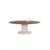 Op zoek naar een ruime eetkamertafel met karakter? BRIANZA combineert een ovalen blad in stijlvol walnootfineer met een opvallende ellipsvormige kolompoot in steelbrown. De schuine afwerking van de rand maakt de tafel visueel licht, terwijl de verzwaarde kern van de poot voor stabiliteit zorgt. De ronde vormen en subtiele metalen details geven dit ontwerp een eigentijdse draai aan klassiek notenhout. Wil je een lichtere look? BRIANZA is ook verkrijgbaar met een poot in crèmekleur. Deze tafel is onderdeel van de BRIANZA collectie, waarin je meerdere tafels en kasten vindt die samen zorgen voor een luxe en moderne uitstraling.