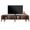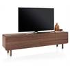 Dit BRIANZA lowboard is een modern en stijlvol meubel dat perfect dient als tv- of hifimeubel. Met zijn vier greeploze deuren en softclose systeem combineert dit lowboard gebruiksgemak met een strakke uitstraling. Het meubel is afgewerkt in gelakt notenfineer, waarbij de zichtbare nerfstructuur als één vloeiende lijn over de volledige breedte doorloopt. Uniek detail: de fronten hebben een subtiele opstaande rand die samen een elegante, afgeronde lijst vormen. Dankzij de afgeronde hoeken en de doorlopende notenhouten poten oogt het lowboard verfijnd en harmonieus. Je kunt BRIANZA zowel staand als zwevend aan de wand plaatsen, voor een ruimtelijk en luchtig effect.