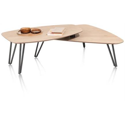 Ben je op zoek naar een salontafelset met een minimalistische look? Deze set uit de LINDFIELD serie is dé eyecatcher van je woonkamer! De twee tafels hebben een organische vorm en staan op drie ranke poten. Het blad heeft een eikenhouten look wat zorgt voor een natuurlijke touch. Voor een speels effect schuif je de tafels deels over elkaar heen. Maak je interieur compleet en combineer deze stijlvolle tafelset met een prachtige kast uit de LINDFIELD serie.