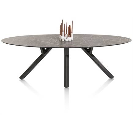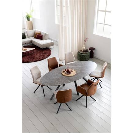 Bereid je voor op lange avonden tafelen met deze ellipsvormige eetkamertafel MINATO in je huis! De tafel heeft een lichtgrijs blad van hoogwaardig MDF en is afgewerkt in Primo Laminato (HPL) met marmerlook. Het metalen onderstel heeft een mooie grafietkleur. De ronde vormen van deze eetkamertafel geven je interieur een zachte touch. Zie jij hem al staan in je eetkamer? Eetkamertafel MINATO van 240 x 110 cm is er ook als bartafel!