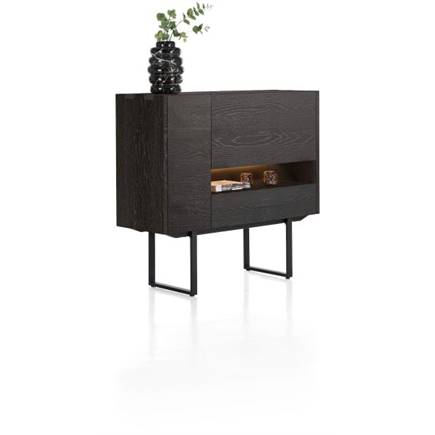 eikenfineer onderstel in metaal, zwart