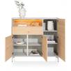 Dressette NIORA is een elegante eyecatcher met een strakke belijning. Deze blikvanger voor je interieur is gemaakt van gelakt MDF en heeft een afmeting van 148 cm. Hij is voorzien van 3 deuren + 1 lade + 1 niche dat met led is verlicht. Zo zet je jouw mooiste accessoires in de spotlight. De deuren van NOIRA zijn vervaardigd van eikenfineer, wat zorgt voor een natuurlijke look. De metalen pootjes, afgewerkt in ton-sur-ton silk grey, geven het dressette een frisse, moderne uitstraling. De deuren en lades zijn uitgerust met een softclose systeem voor zacht en geruisloos sluiten. NIORA is ook verkrijgbaar als lowboard, dressoir of bergkast.
