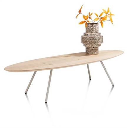 Dit is NIORA; een prachtige minimalistische salontafel met een mooie natuurlijke look. Het organisch gevormde blad is gemaakt van eikenfineer. De salontafel heeft een afmeting van 150 x 50 cm en staat op een rank metalen onderstel dat verkrijgbaar is in 2 kleuren: silk grey of grafiet. Liever een blad met een iets luxere uitstraling? NIORA is ook verkrijgbaar met een licht grijs blad, gemaakt van Primo Laminato (HPL) met marmerlook. De salontafel is er ook in een maat kleiner. Zie jij deze elegante eyecatcher al in je woonkamer staan? Tip: je shopt NIORA ook als eetkamertafel.
