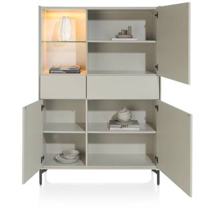 Wil jij je interieur upgraden met een stijlvolle bergkast? Kijk dan eens naar NOON, een prachtige bergkast met een elegante, tijdloze uitstraling. De bergkast is vervaardigd van gelakt MDF in de kleur silk grey en heeft 3 deuren + 2 laden. Deze zijn greeploos en voorzien van een softclose systeem. Het met led verlichte niche leent zich uitstekend om je mooiste items in de schijnwerpers te zetten. NOON pronkt op metalen pootjes die beschikbaar zijn in 2 kleuren: grafiet (standaard) en silk grey (meerprijs). NOON is ook verkrijgbaar als lowboard, dressoir en dressette.