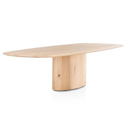 Ben je op zoek naar een naturelkleur eetkamertafel met een organische vorm blad? Kijk dan eens naar PALMA, een eyecatcher van een eetkamertafel in massief eikenhout. Het blad ligt op een centraal onderstel in naturelkleur eikenfineer met de vorm van een ellipsvormige kolom. De poot is aan de binnenzijde verzwaard om maximale stabilteit van de tafel te garanderen. PALMA heeft een formaat van 240 x 120 cm. Je shopt hem in meerdere afmetingen. Ook verkrijgbaar als salontafel!
