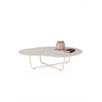 De ROTA salontafel is uitgevoerd met een keramisch blad met terrazzo motief en een organisch gevormd ontwerp. Het crèmekleurige metalen onderstel bestaat uit slanke buizen met een vierkante belijning en geeft de tafel een luchtige uitstraling. Dankzij de neutrale kleuren en materialen past ROTA moeiteloos in verschillende interieurs en is hij goed te combineren met de bijzettafel uit dezelfde serie.
