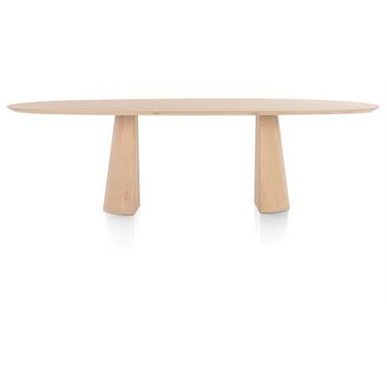 Uren tafelen en borrelen met vrienden en familie wordt een feestje aan eetkamertafel TRENTON. Deze organische eyecatcher is gemaakt van naturelkleurig eikenfineer en heeft een afmeting van maar liefst 270 x 120 cm. Ga je liever voor iets meer pit, kijk dan eens naar de variant in de kleur clay. TRENTON staat op twee halve conische poten die op twee posities te plaatsen zijn: centraal of aan de uiteindes. De poten zijn aan de binnenzijde verzwaard om maximale stabilteit van de tafel te garanderen. Zie jij hem al staan in je eetkamer? Kijk vooral ook eens naar de prachtige salontafels en kasten uit deze serie!