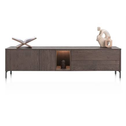 Aan opbergruimte geen gebrek met lowboard TRENTON dankzij 2-deuren + 2-laden + 1-niche. TRENTON is een prachtig eigentijds lowboard met vriendelijke, ronde vormen. Het is vervaardigd van eikenfineer in de kleur clay, wat zorgt voor net dat beetje pit in je interieur. Een gefreesd latjesmotief geeft TRENTON zijn unieke look. De deuren en laden zijn voorzien van een push to open systeem. Het lowboard rust op een stevig metalen onderstel in de kleur grafiet. Laat je verrassen door de andere uitvoeringen waarin TRENTON verkrijgbaar is.